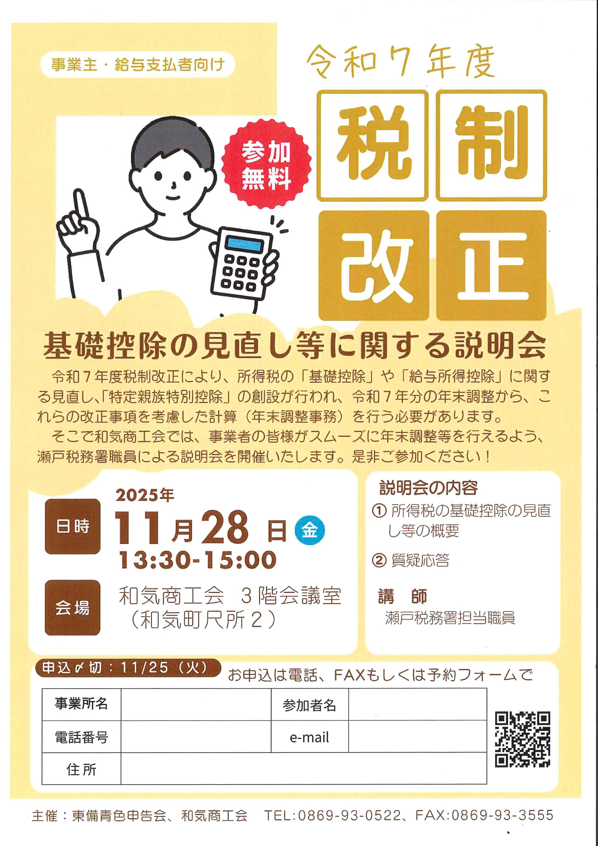 年末調整事務等がスムーズに行えるよう事業主、給与担当者向けに説明会を開催します。